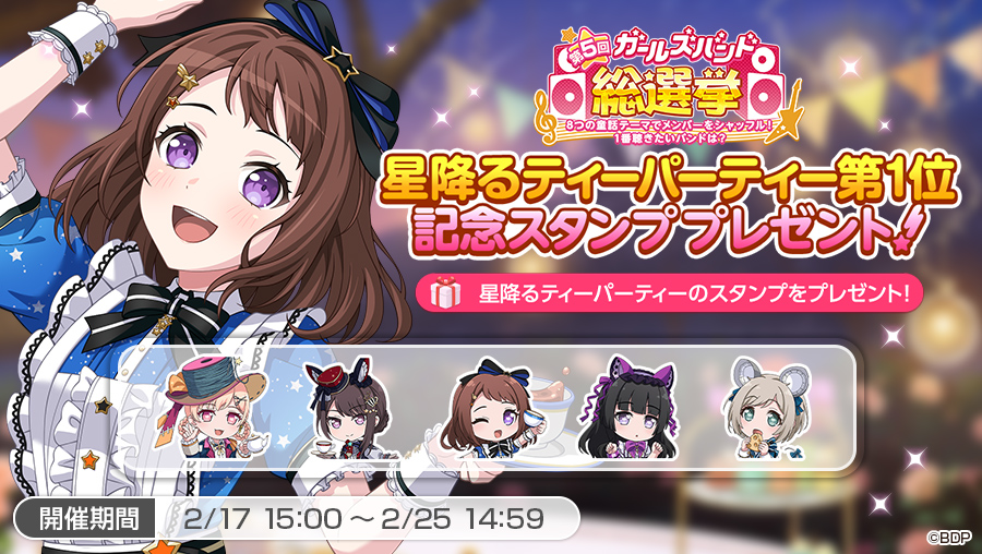 第5回ガールズバンド総選挙 星降るティーパーティー第1位記念スタンププレゼント!